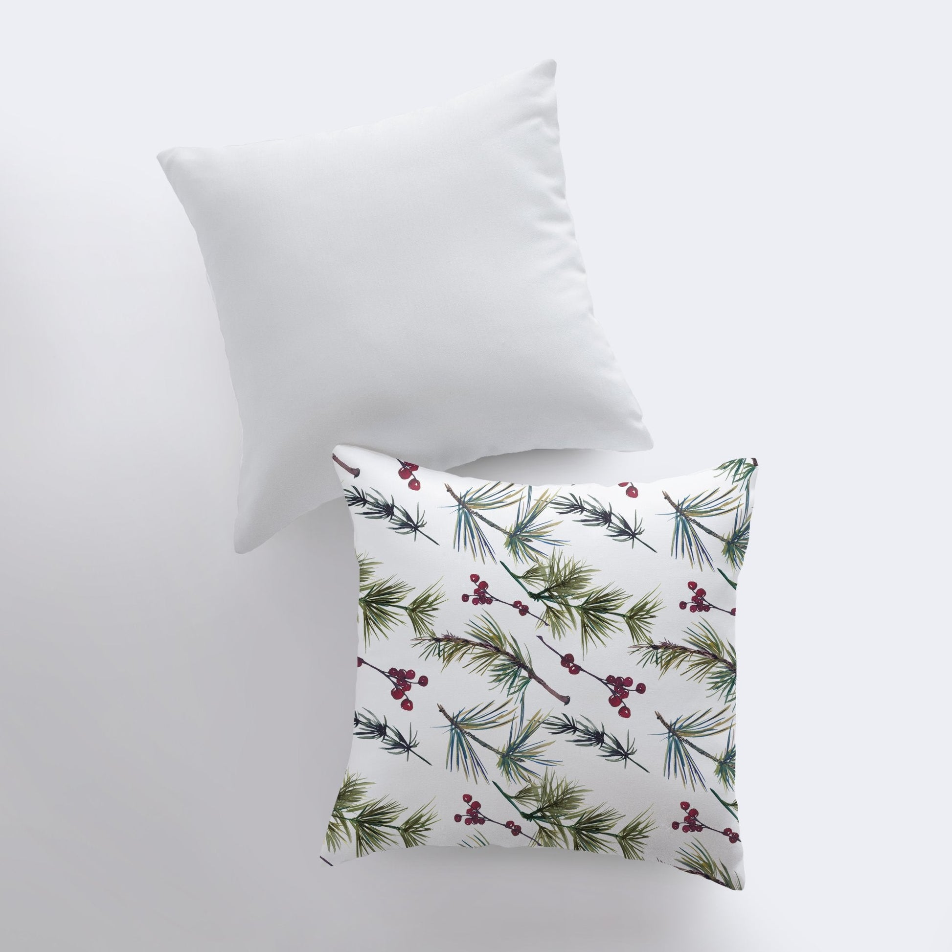 Part of our lovely Poinsettia Christmas collection, this repeating holly berry and pine branch print is a great accent pillow to go along with either of our other scripted poinsettia designs. If you live in an area where evergreen trees are hard to come by, or you just love bringing in the natural sights of the season, this pillow is the right choice for you!