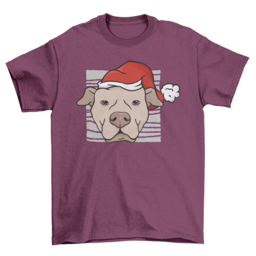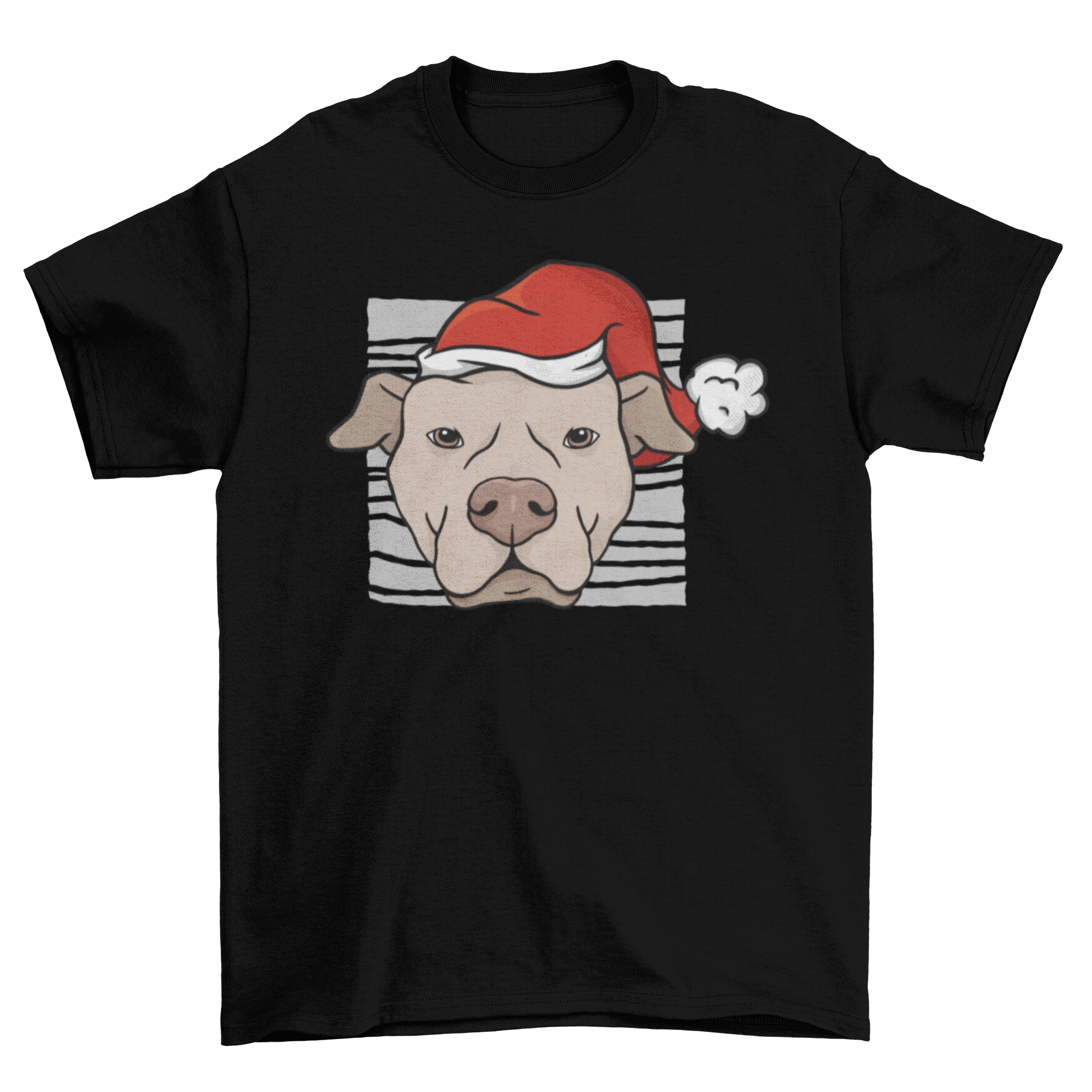 Cute t-shirt design featuring a pitbull's head wearing a Santa hat.