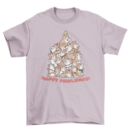 Fun t-shirt design featuring a Christmas tree in the shape of corgi dogs with the quote