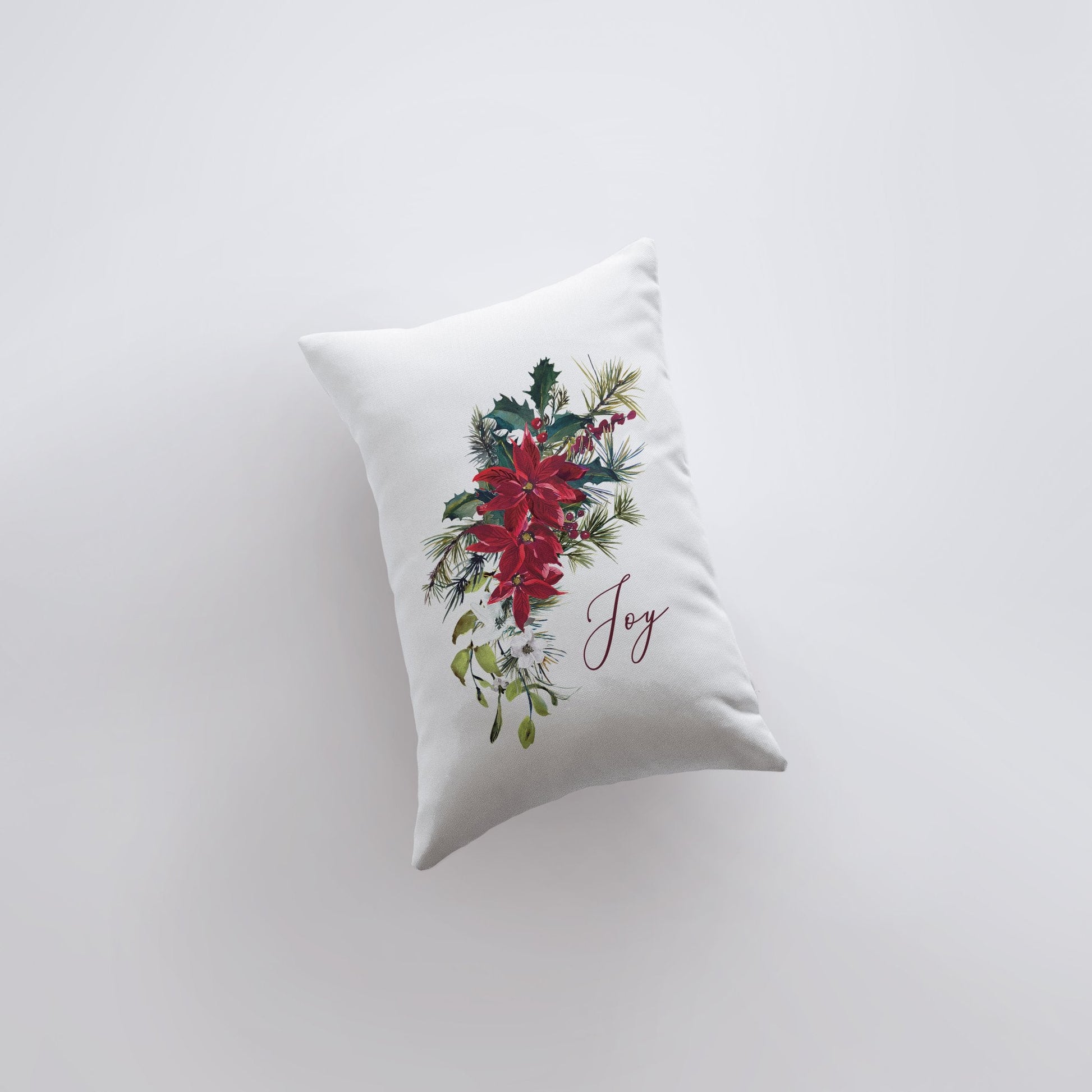 Part of our lovely Poinsettia Christmas collection, featuring colorful, seasonal swag prints to decorate your living area this holiday. Sophisticated yet festive, these bright and beautiful pillows each hold the very reason for the season. Place this one on your sofa to add in the "Joy" which so often can escape us amidst the inevitable hustle and bustle of the holidays.