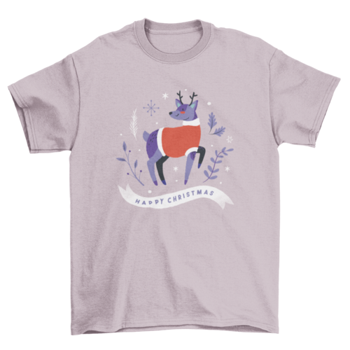 Cute t-shirt design featuring an illustration of a reindeer and the quote "Merry Christmas"