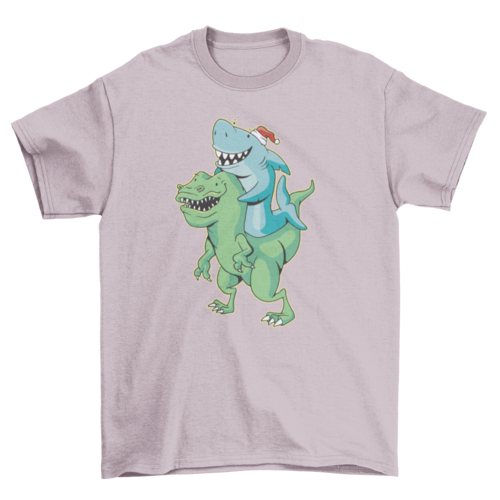 Shark Riding T-rex Christmas T-shirt