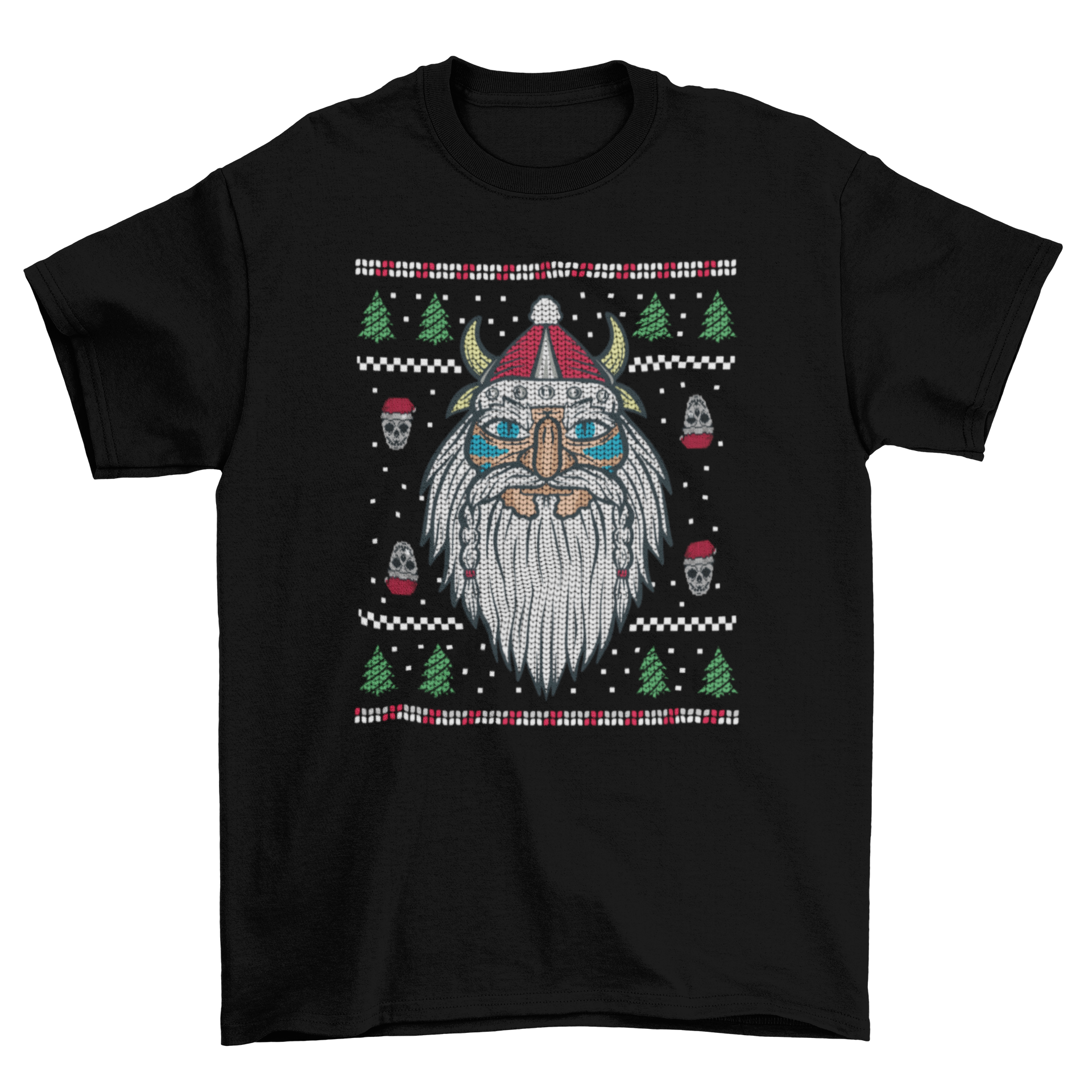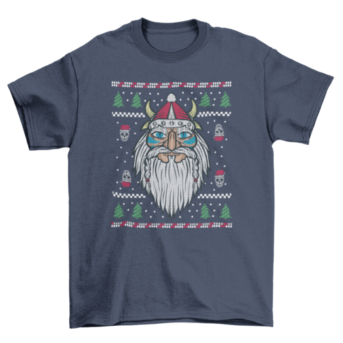 "Ugly Sweater" t-shirt design that features a Viking Santa head.